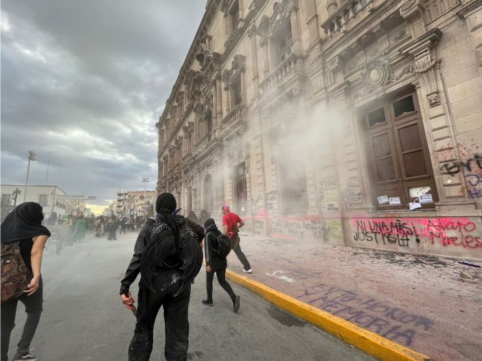Debido a los daños ocasionados a la sede de gobierno, las autoridades comenzaron a lanzar gas lacrimógeno a quienes intentaban derribar la puerta.