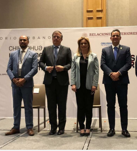 La gobernadora y el secretario de Relaciones Exteriores, una de las cuatro “corcholatas” presidenciales, participaron en la inauguración del foro “Interconectando ciudades inteligentes” que se realiza en el Centro de Convenciones y Exposiciones Expo Chihuahua, de la capital del estado.