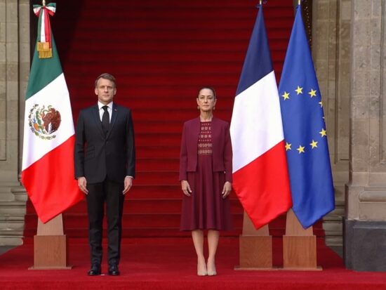 Macron es recibido por Claudia Sheinbaum en Palacio Nacional