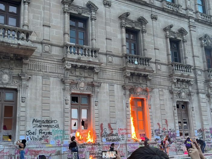 Manifestaciones por el Día Internacional de la Mujer se intensificaron durante la tarde de este miércoles cuando las integrantes de los colectivos iniciaron un incendio en las ventanas de Palacio de Gobierno, ubicadas sobre la calle Venustiano Carranza.