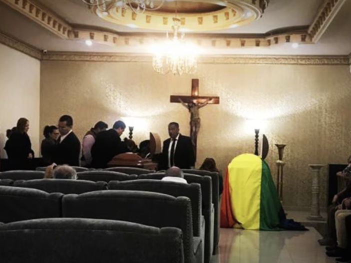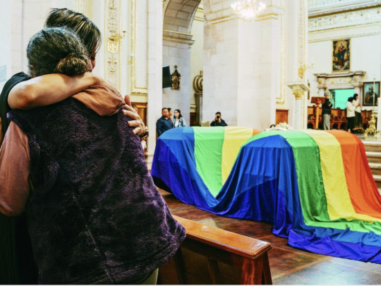 El ataúd de Dorian, a un lado del féretro de Jesús Ociel, fue parcialmente cubierto por la bandera arcoíris.