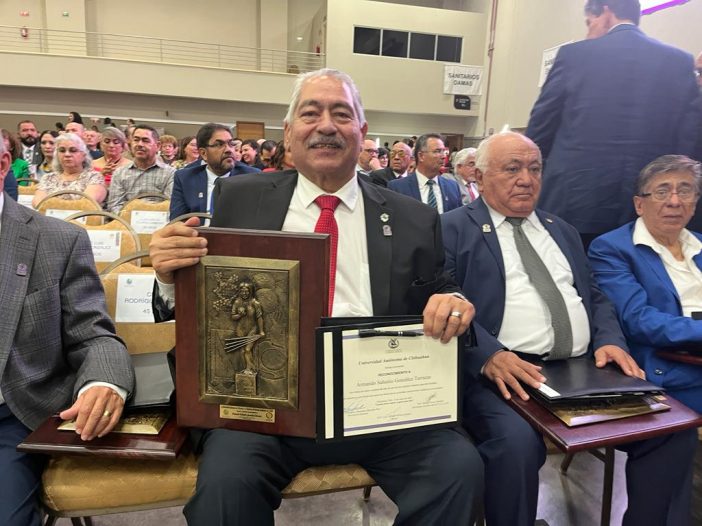 En el marco del Día del Maestro, la Universidad Autónoma de Chihuahua (UACH) reconoció la labor de catedráticos de hasta 45 años de trayectoria; evento en el que estuvo presente la gobernadora del estado Maru Campos.