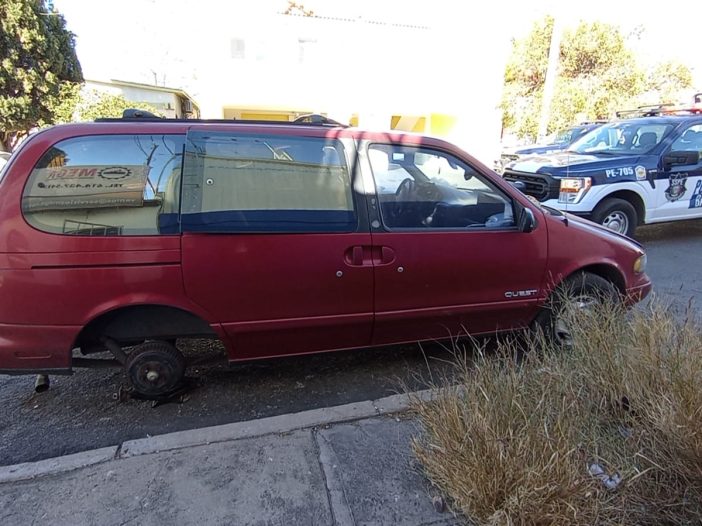 Agentes de la Policía Vial lograron la localización de una camioneta Nissan Quest de color rojo con reporte de robo, situada en la calle República de Argentina, casi en el cruce con la avenida Francisco Villa.