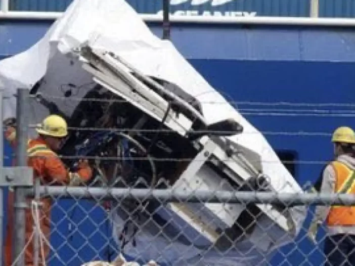En el muelle de la Guardia Costera de Terranova, Canadá, se observaron este miércoles piezas de equipo cubiertas con lona blanca que estaban siendo descargadas del Horizon Arctic.