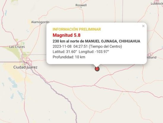 El SSN, informó que durante la noche del jueves cerca de las 22:40:20 horas se presentó un movimiento telúrico con una intensidad de 4.1 grados en la escala de Richter, a 87 kilómetros al suroeste de Cuauhtémoc cerca de la comunidad de San Juanito en el municipio de Bocoyna.