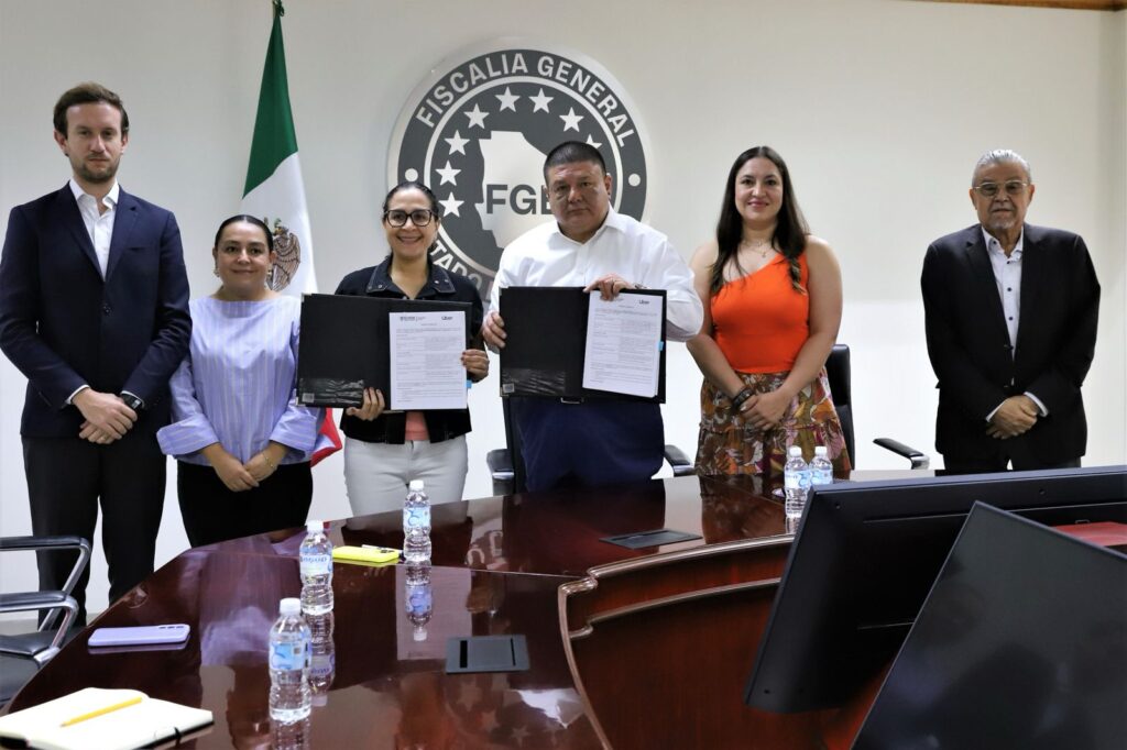 Este jueves, el fiscal general del Estado, César Jáuregui Moreno, firmó la renovación del convenio con Uber para la donación de viajes a mujeres que necesitan atención y servicios que brida la Fiscalía Especializada en Atención a Mujeres Víctimas del Delito por Razones de Género y a la Familia y otras instancias de Gobierno del Estado.
