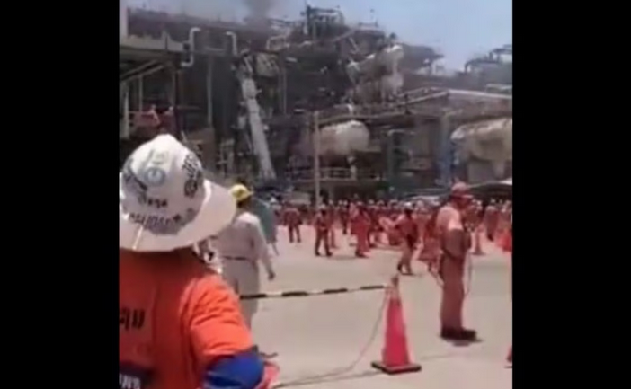 }En la grabación de nueve segundos, se alcanza a ver a trabajadores vestidos con overol naranja salir de la zona de la explosión mientras se relata lo ocurrido este miércoles, en estas instalaciones que aún no inicia operaciones de manera formal.