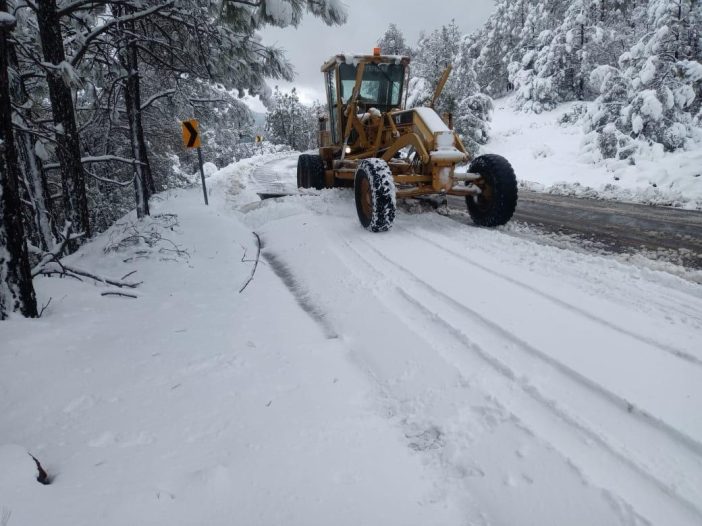 Cierres Carreteros por Acumulación de Nieve: Ignacio Zaragoza- Buenaventura, Madera – El Largo Maderal el cual ya fue reabierto alrededor de las 16 horas.