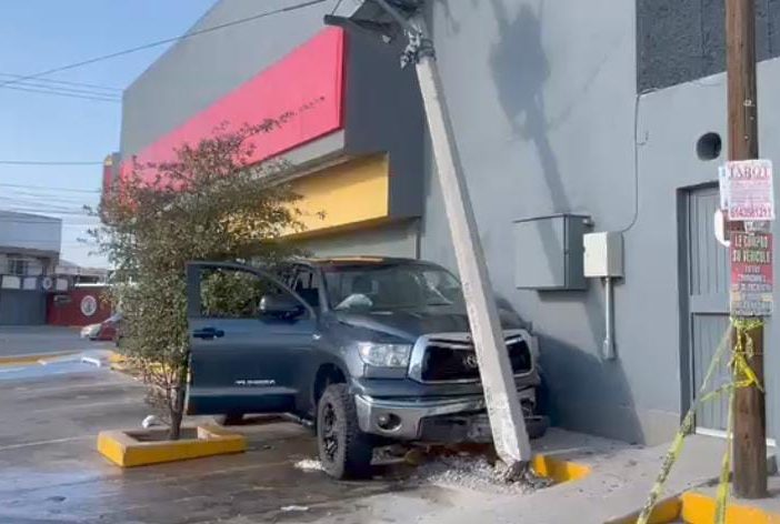 El conductor de una pickup Toyota tundra perdió el control de la unidad y se impactó contra un poste con un transformador de la Comisión Federal de Electricidad.