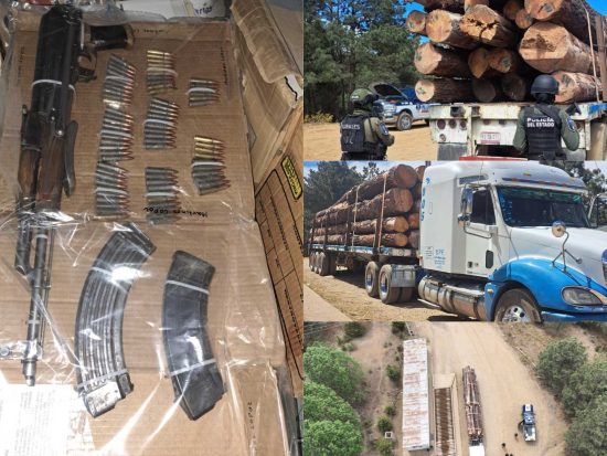 Aseguran tractocamión con madera y un arma de fuego en Guadalupe y Calvo