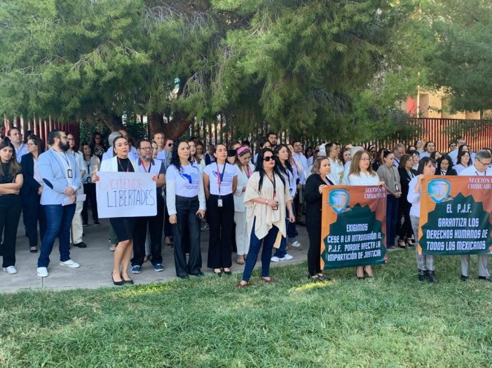 Marisela Rodríguez Chávez, secretaria general del sindicato de trabajadores del Poder Judicial Federal en su sección 18 de Chihuahua, encabezó la protesta.