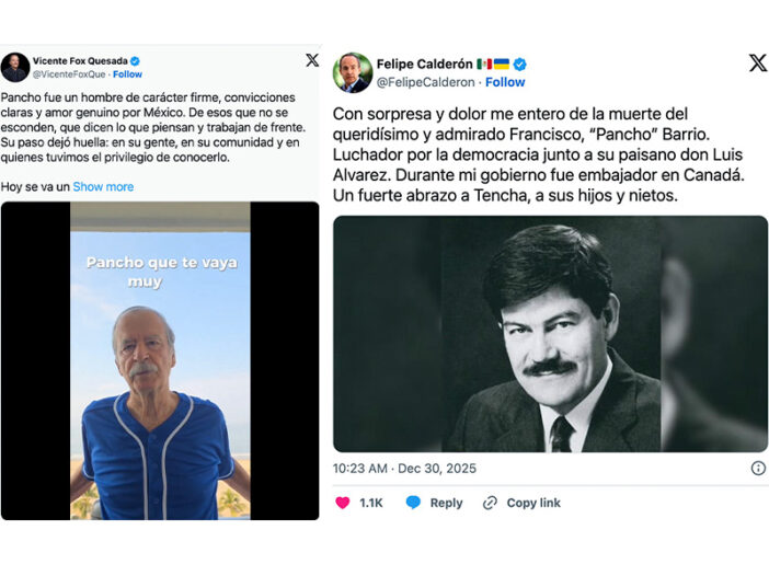 A través de su cuenta en la red social X, Fox se refirió a Pancho Barrio como un gigante en la historia de México, de la democracia, de la libertad, los derechos humanos y la economía de mercado.
