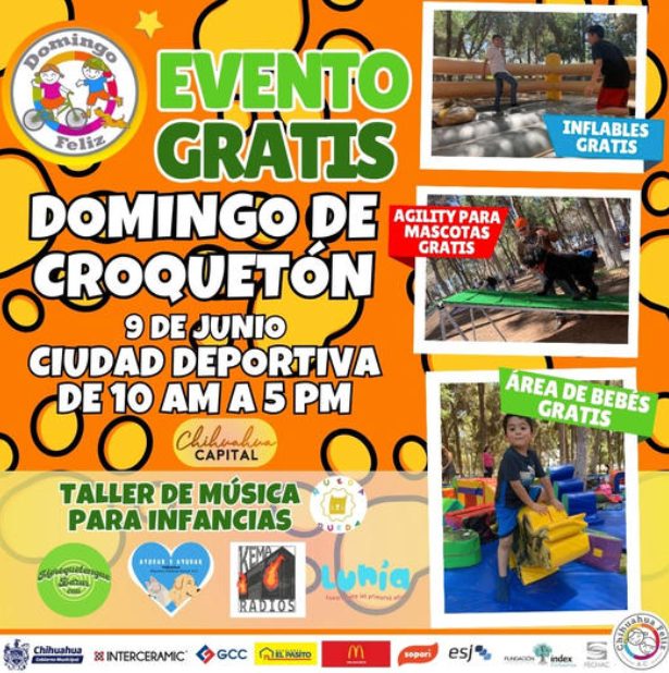 También habrá música en vivo a las 2:00 de la tarde, inflables para menores gratis y el bazar que se pone cada fin de semana en el Domingo Feliz de la Ciudad Deportiva.