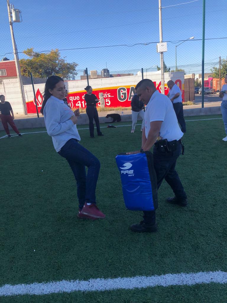 Las actividades se desarrollan inicialmente con una plática de sensibilización de 20 minutos, acerca de temas de seguridad, seguido de cuatro sesiones de defensa personal.