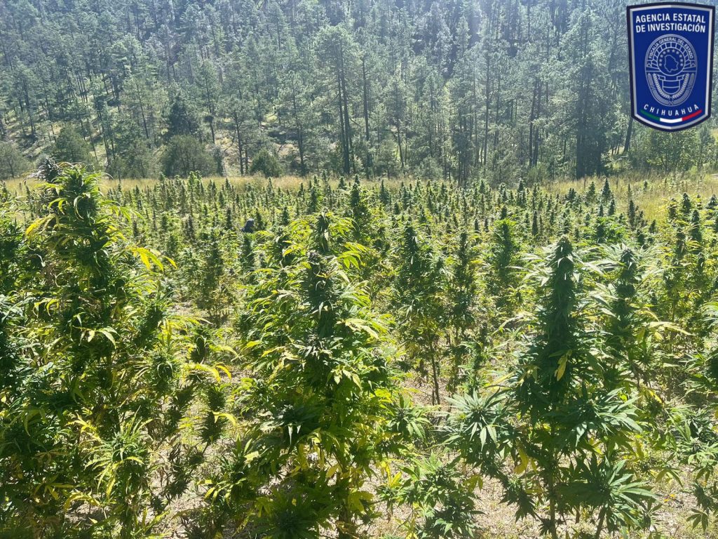 El estupefaciente localizado corresponde a: 11 mil 200 plantas de 70 centímetros de altura en un predio de 2 mil 800 metros cuadrados; 6 mil 300 plantas de 1.50 metros de altura, en un predio de 2 mil 100 metros cuadrados; y 21 mil plantas con una altura de 1.80 metros en una superficie de 3 mil 500 metros cuadrados.