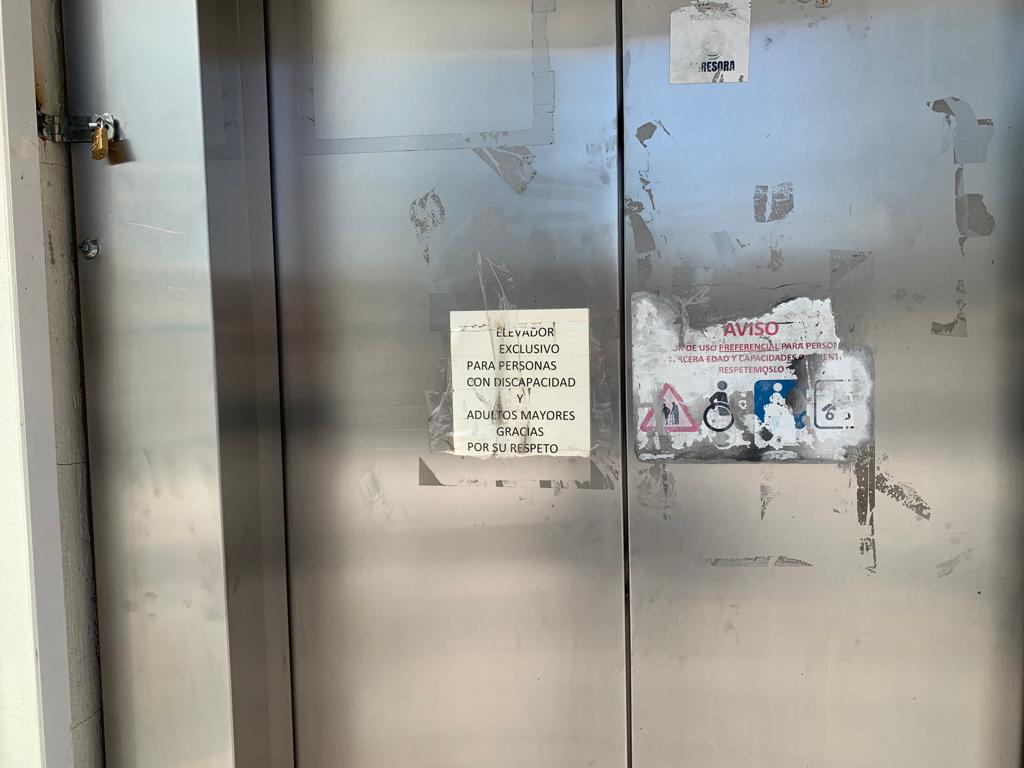 Usuarios del elevador para personas con discapacidad sufren para subir en silla de ruedas y en muletas las escalinatas que los lleven de la estación subterránea a la superficie.