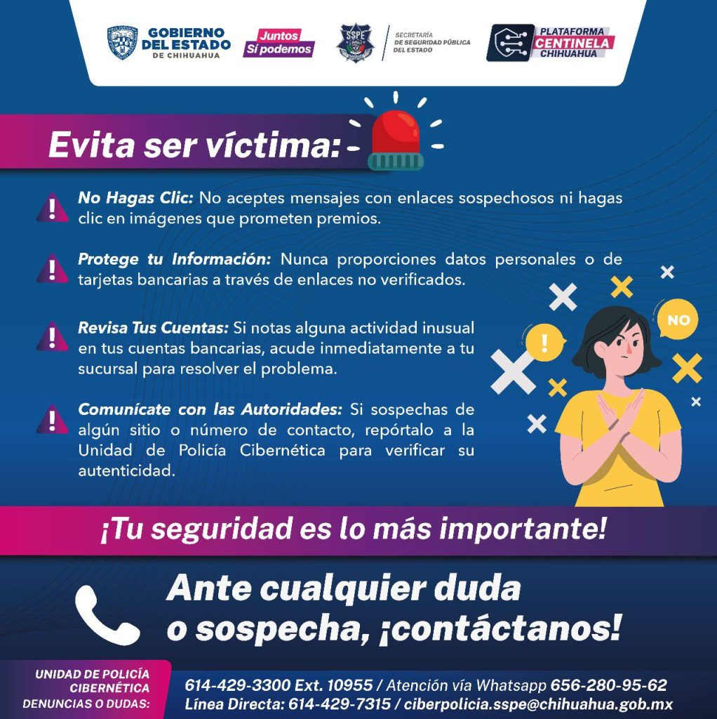 Así como el correo ciberpolicia.sspe@chihuahua.gob.mx, para comunicarse con la unidad cibernética.