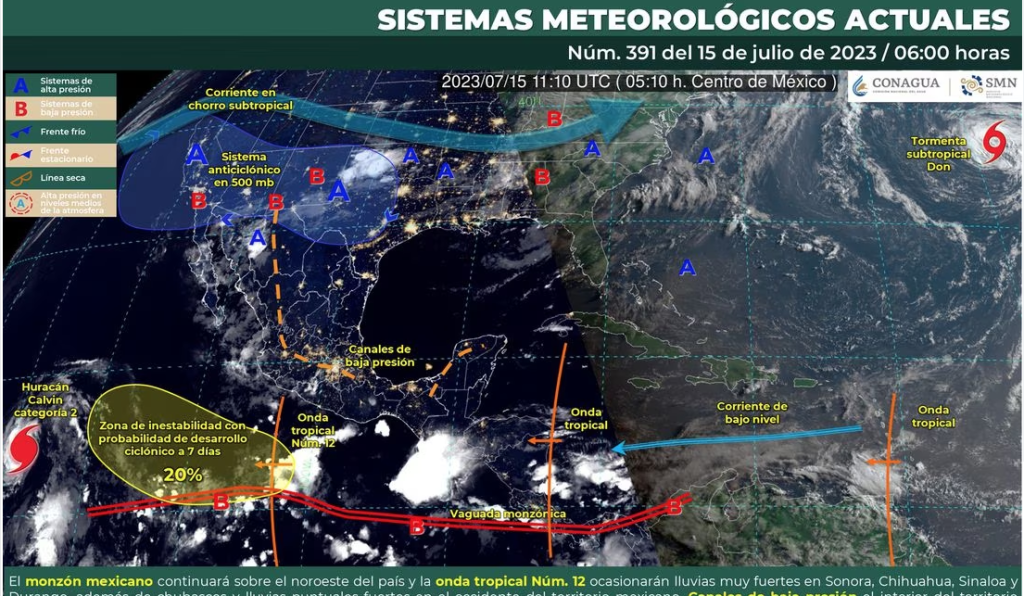 Para este sábado 12 y domingo 13 se esperan precipitaciones pluviales fuertes para municipios serranos como Guadalupe y Calvo, Casas Grandes, Madera, Temósachic, Ocampo, Guerrero, Urique y Guachochi derivado de la presencia del Monzón Mexicano en tierras chihuahuenses.