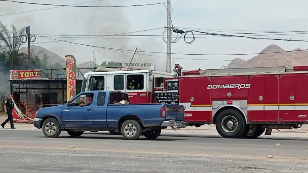 Un puesto de comida ubicado en el kilómetro 5.5 de la carretera Aldama de Chihuahua fue consumido por el fuego luego de una explosión de un tanque de gas.