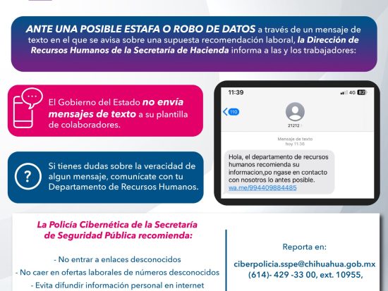 Por lo anterior, la Secretaría de Seguridad Pública Municipal pide a la ciudadanía a tomar precauciones y evitar responder las llamadas del número telefónico 656-796-6146 para impedir ser víctimas de fraude.