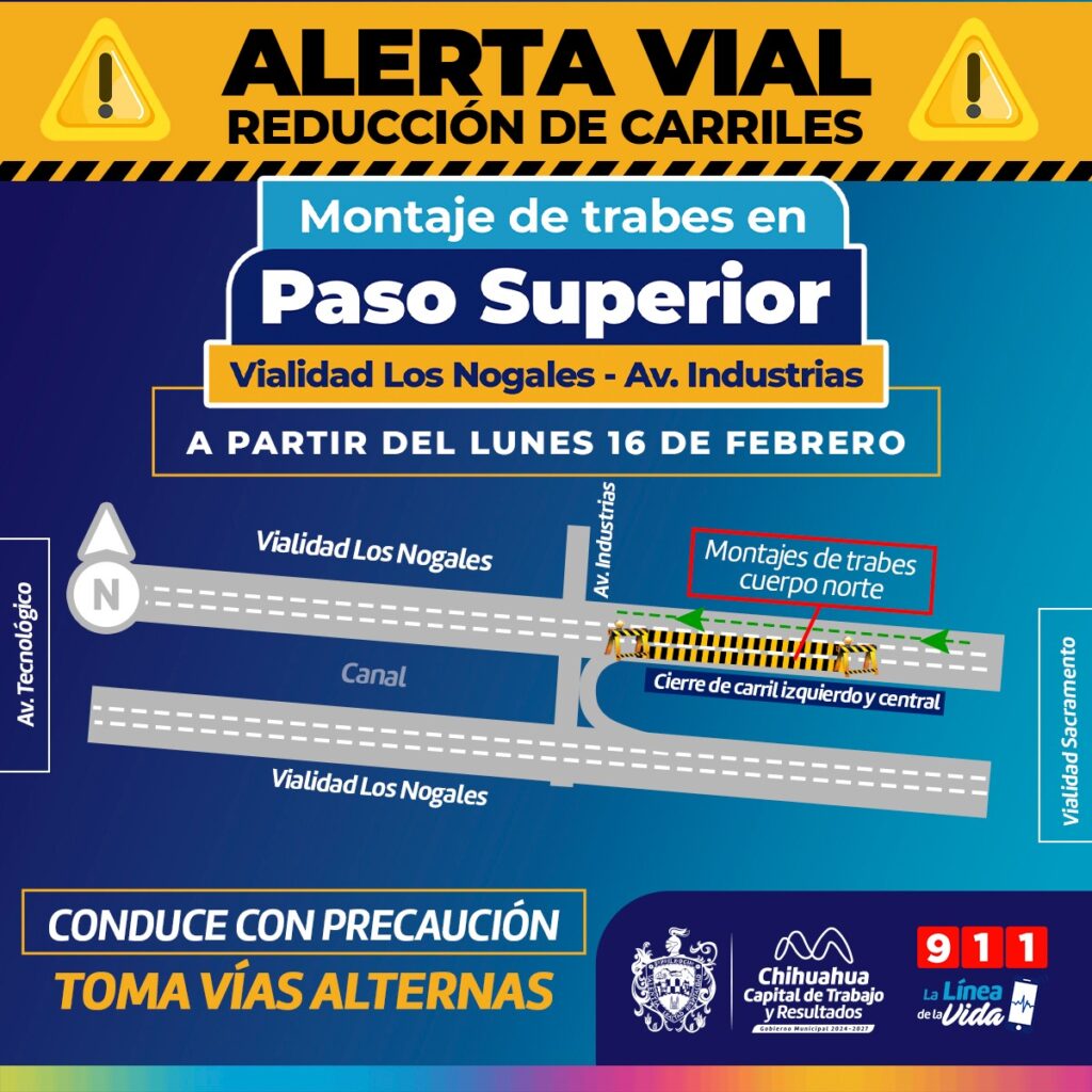 Debido a la naturaleza de los trabajos, el carril central de la vialidad Los Nogales se verá afectado en el tramo comprendido del CAAPS Nogales hacia la avenida de las Industrias, añade el comunicado.