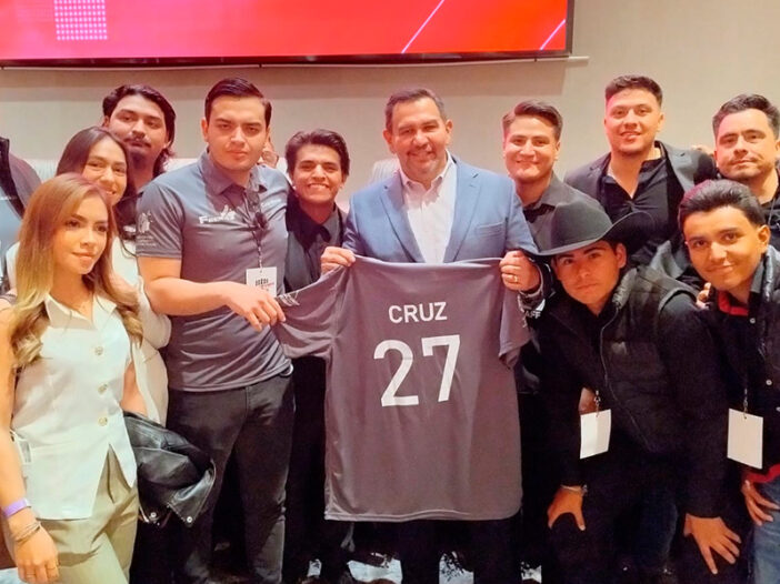 Durante su mensaje, agradeció la oportunidad de reunirse con organizaciones de la sociedad civil y destacó la importancia de fortalecer los vínculos entre Juárez y la capital del estado. Al concluir el encuentro, se formó una larga fila de asistentes —en su mayoría mujeres— que buscaban tomarse una fotografía con él. Casi al final, un grupo de jóvenes le obsequió una camiseta negra con el número 27 y el nombre “CRUZ” impreso en la espalda.