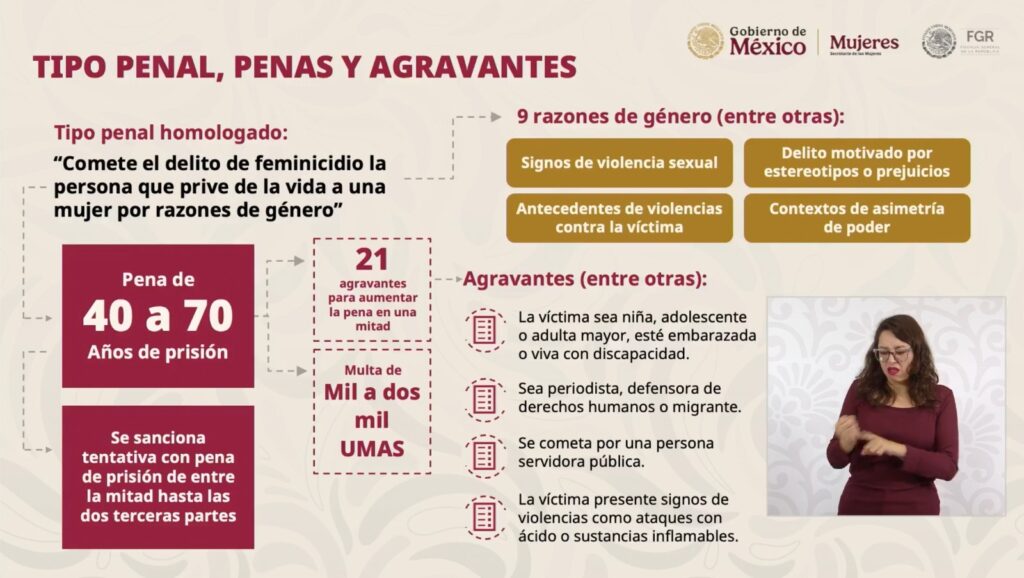 Uno de los puntos centrales es establecer un solo tipo penal a nivel nacional, con el fin de evitar diferencias entre estados en la forma de investigar, clasificar y sancionar el feminicidio, lo que actualmente genera vacíos legales y criterios dispares.