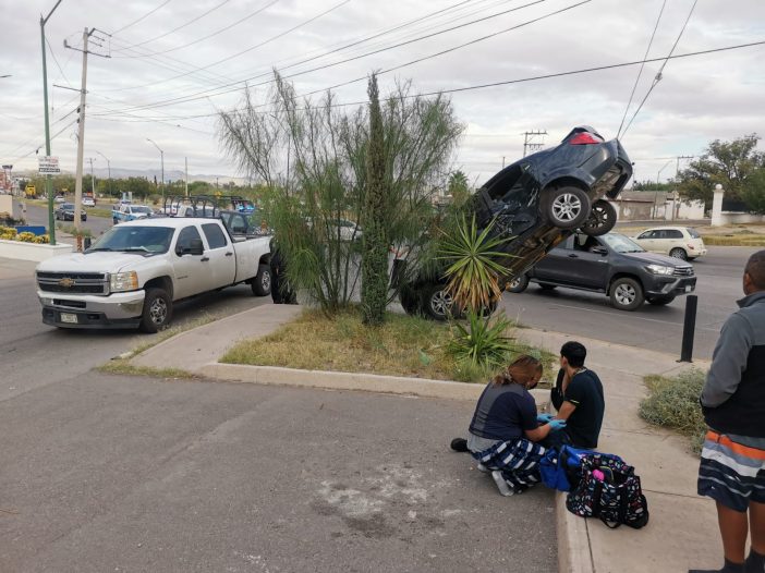 El accidente ocurrió cuando el conductor de una pickup Chevrolet Silverado de doble cabina circulaba por la calle Monte Celeste y cruzó la avenida sin percatarse que de oeste a este por la Monte Albán viajaba el conductor del Sonic.