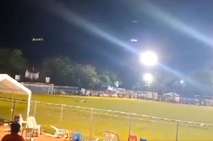Tras el ataque, los escoltas del presunto líder criminal atacaron a la mujer, quien quedó tendida en el campo de futbol.