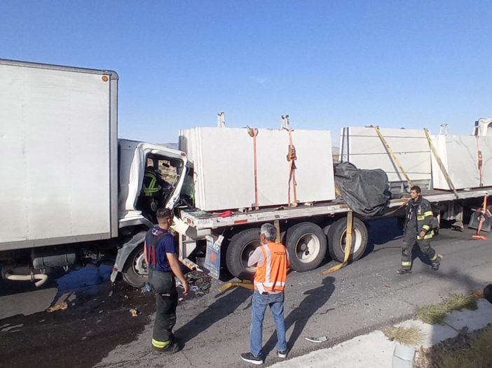 Se trata de un choque entre un camión rabón de la empresa logística Express que se impactó en la parte trasera de un tráiler cargado con 25 toneladas de mármol.