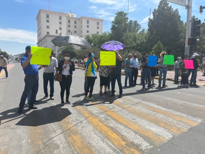 Una manifestación de al menos una decena de personas afectadas por un fraude financiero por parte de la empresa Aras bloqueó la calle Aldama a la altura del Palacio de Gobierno, provocando caos vial en el primer cuadro de la ciudad.