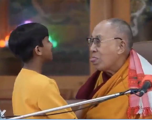 Las imágenes muestran al dalái lama besando al joven en los labios durante un acto y en presencia de otros adultos, para acto seguido preguntar si éste puede “chupar” su lengua. Segundos después, el líder espiritual tibetano señala su boca y saca la lengua.