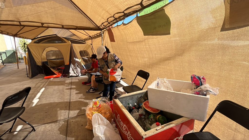 Los protestantes se quedaron sin poder utilizar el aire acondicionado en las instalaciones, por lo que desde anoche soportan las altas temperaturas bajo la carpa.