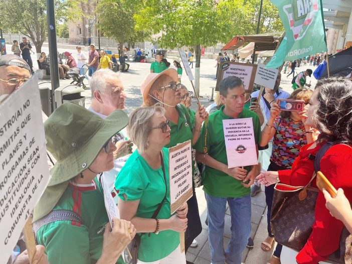“Rechazamos el contenido de los libros de texto gratuito, por el adoctrinamiento con ideologías contrarias a nuestros principios y valores, así como al raquítico contenido académico”, explicó una de las presentes.