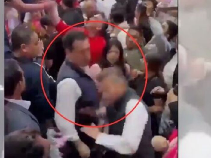 El pleito fue protagonizado por Jair, el jefe de logística de Alito Moreno, quien le dio un cabezazo a Héctor Flores, su igual pero de la candidata presidencial Xóchitl Gálvez. Esto ocurrió durante un mitin de la exsenadora. En el material se puede apreciar cómo se dan empujones hasta que Jair, quien se notó molesto, la da un cabezazo al militante de la misma coalición, quien posteriormente se agarró la nariz como respuesta al golpe.