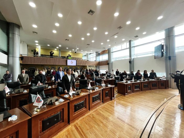Las y los diputados presentes del PRI, PAN y Morena, se pusieron de pie en conjunto con los asistentes a las sesión, así como personal administrativo y jurídico del Poder Legislativo.