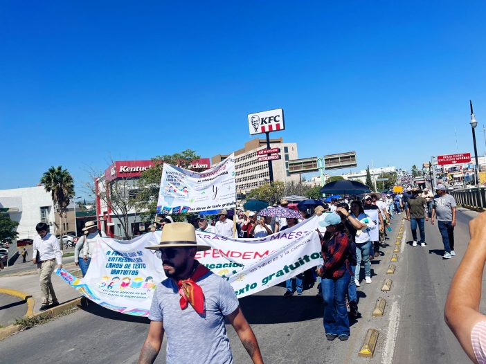 La docente quien dijo ser maestra de tiempo completo en escuela pública, comentó que este viernes salieron a las calles para informarle a la ciudadanía que son responsables de la elaboración de los libros de texto gratuitos para este ciclo escolar 2023-2024, “esos materiales que hoy se rechazan y llaman basura”.