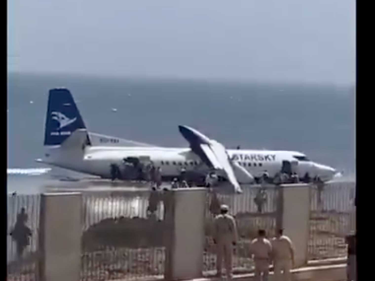 Al intentar aterrizar, el avión no logró detenerse dentro del asfalto de la pista, sobrepasó el final de la misma, descendió por un pequeño acantilado o borde costero y quedó detenido en aguas someras de la playa adyacente al perímetro oeste del aeropuerto, cerca de la zona conocida como Jasiira Beach.