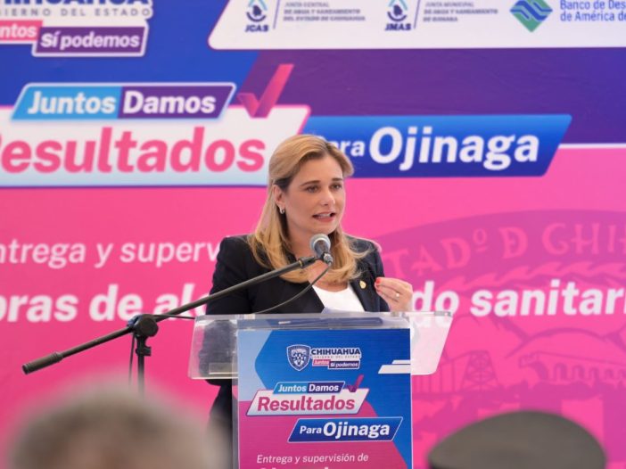 La mandataria estatal estuvo acompañada por el presidente municipal de Ojinaga, Andrés Ramos de Anda y el secretario de Comunicaciones y Obras Públicas, Mario Vázquez Robles.