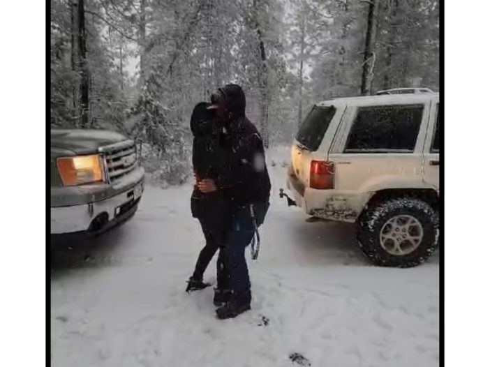En las redes sociales se viraliza el bailecito de una joven pareja sobre el paisaje nevado del municipio de Madera.