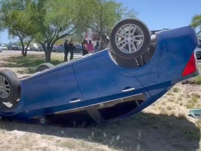 La conductora de un vehículo Chevrolet Sonic que circulaba en la carretera Chihuahua-Aldama y a la altura del kilómetro 4 se volcó al tratar de esquivar una bolsa de basura que se encontraba tirada en uno de los carriles.