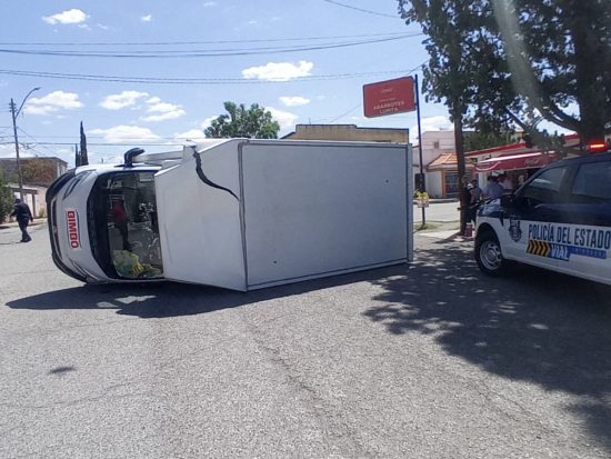 Un aparatoso choque volcadura entre dos camionetas de la marca Yukón se registró en el cruce del periférico R. Almada y Francisco Villa.