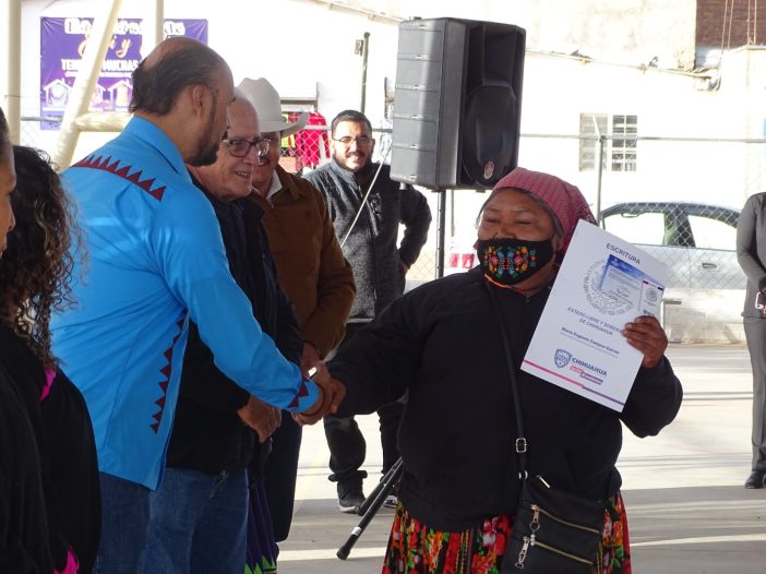 La Secretaría de Desarrollo Urbano y Ecología (SDUE), entregó escrituras de propiedad a 120 familias de la colonia Tarahumara de ciudad Cuauhtémoc, para que tengan certidumbre legal sobre la posesión de su patrimonio.